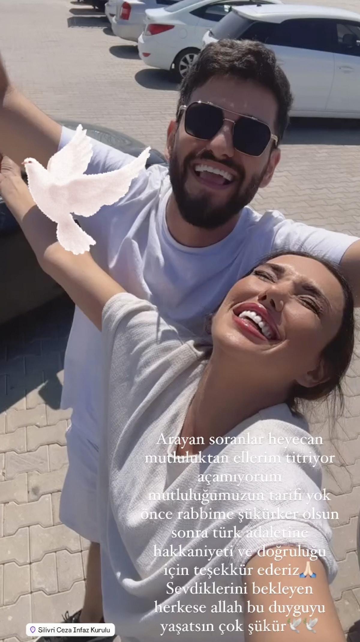 Sıla Doğu tahliye haberi sonrası Can Doğu'yla beraber sevincini göğe bakıp şükrederek yaşadı.