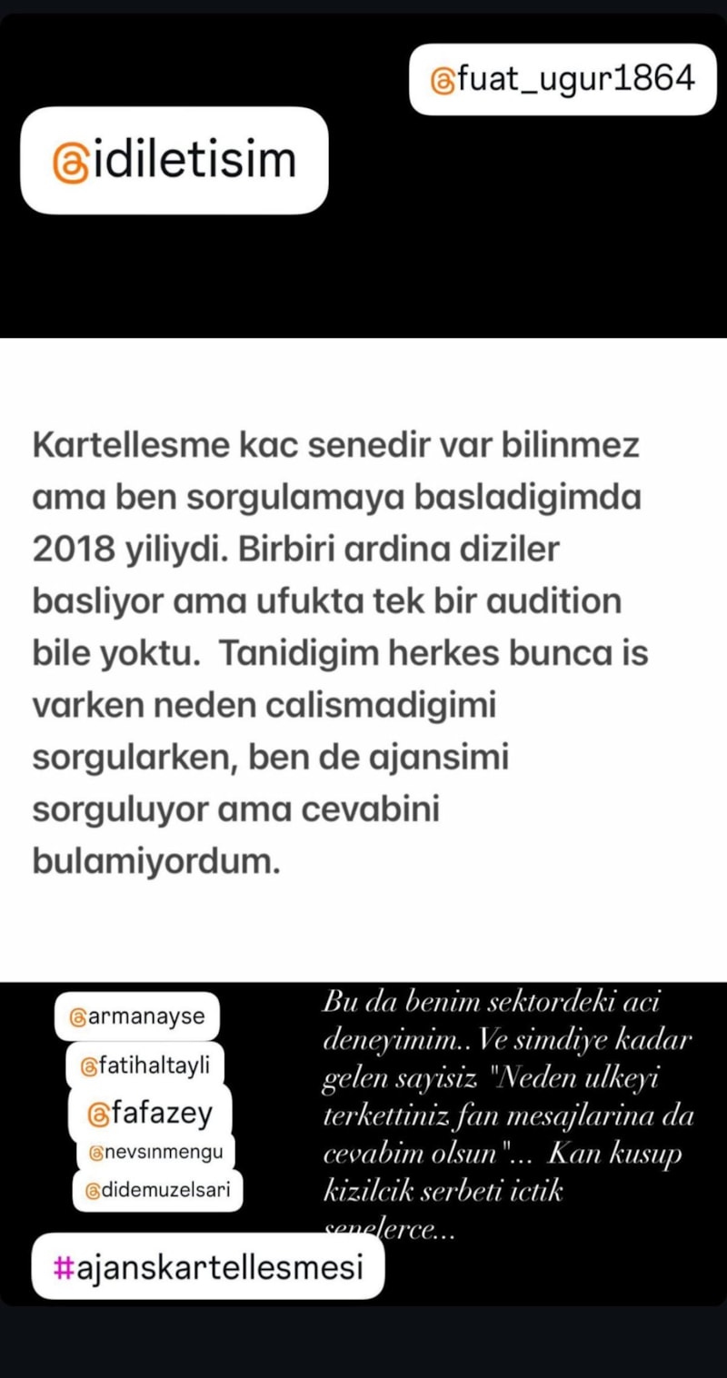 Altunok, "Çok sevdiğim ülkemi kızımı da yanıma alarak terk ettim. Bizi çok sevdiğimiz işimizi yapamaz hale getirdiler. Ellerindeki oyuncularla bütün piyasayı dijital de dahil domine ettiler. Hakkımızı helal etmiyoruz, haksız kazanç elde ettikleri her kuruşun hesabını verdiklerini hepimiz görmek istiyoruz." dedi.