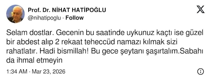 Öyle ki, X paylaşımları dikkatini çeken ünlü ilahiyatçı Nihat Hatipoğlu da takipçilerine tavsiye verdi.