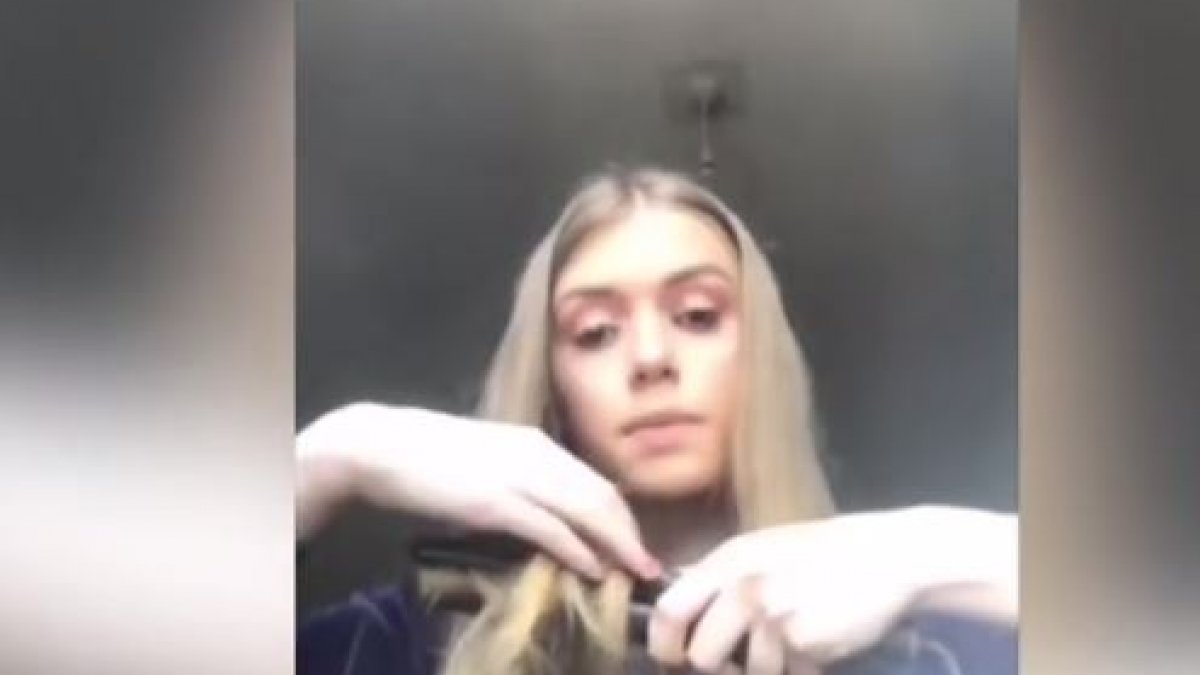 Düzleştirici kullanarak saçlarını kıvırmak isteyen Mairead isimli genç kadın, başına geleceğinden habersiz kameranın karşısına geçti.