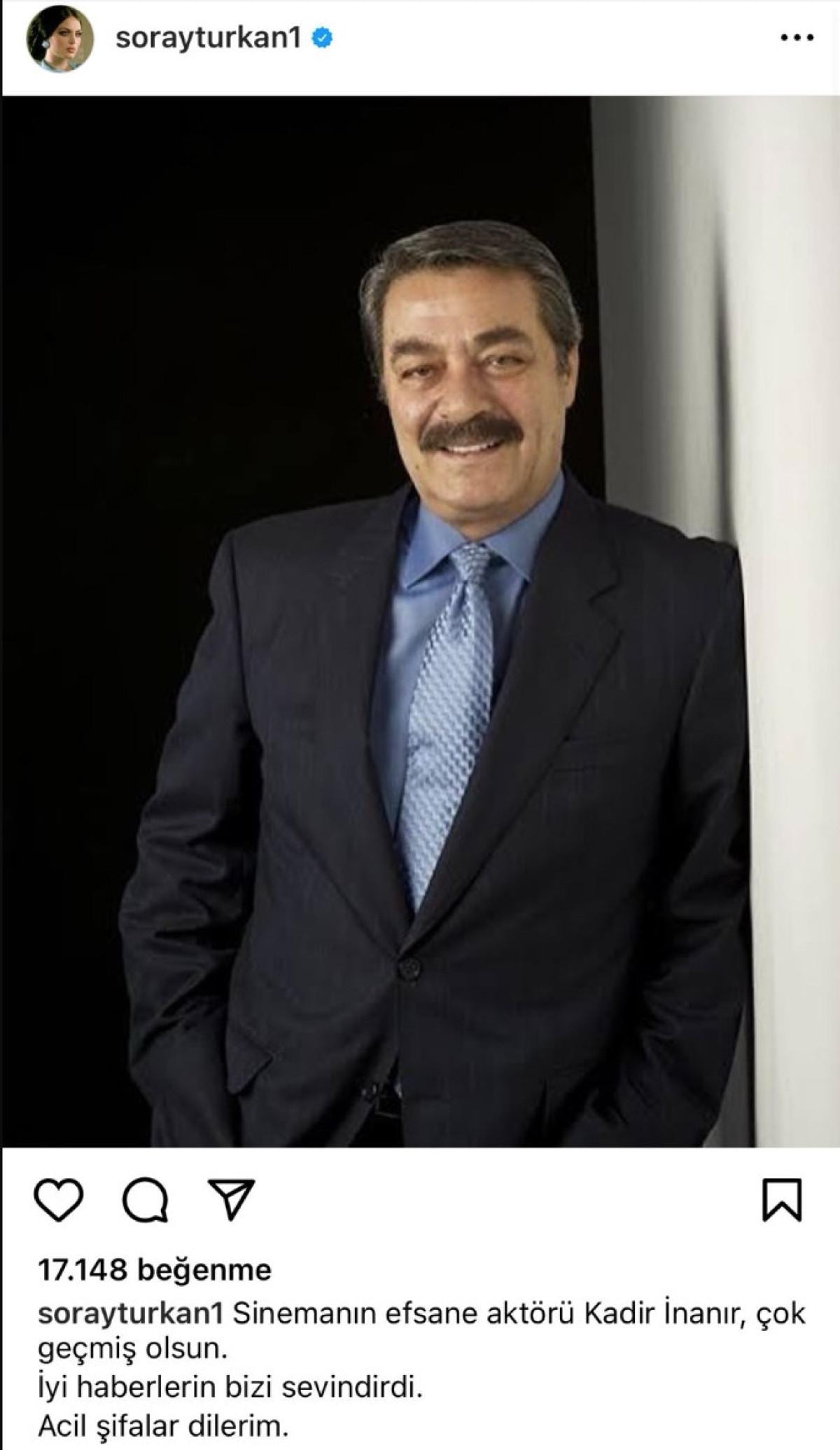 "Sinemanın efsane aktörü Kadir İnanır, çok geçmiş olsun. İyi haberlerin bizi sevindirdi. Acil şifalar dilerim."