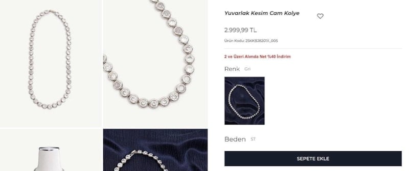 Eşref Rüya'daki kolye 'Yuvarlak Kesim Cam Kolye' olarak geçiyor ve fiyatı 2.999,99 TL.