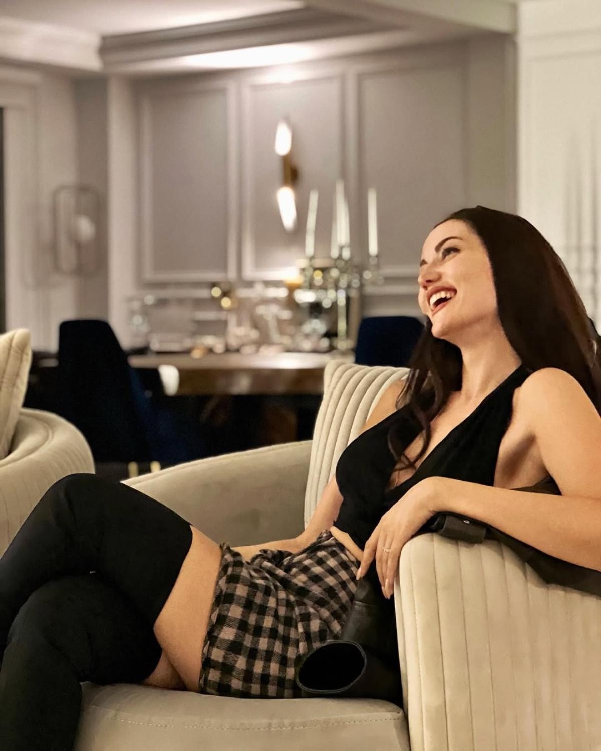 Evcen'in evinin salonunda verdiği pozlar, dekorasyonu ve lüksü gözler önüne serdi.