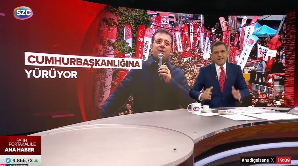 Fatih Portakal, Sözcü TV ekranlarında CHP'nin Beşiktaş'ta düzenlediği miting haberini sunarken Ekrem İmamoğlu'na dikkat çekti..