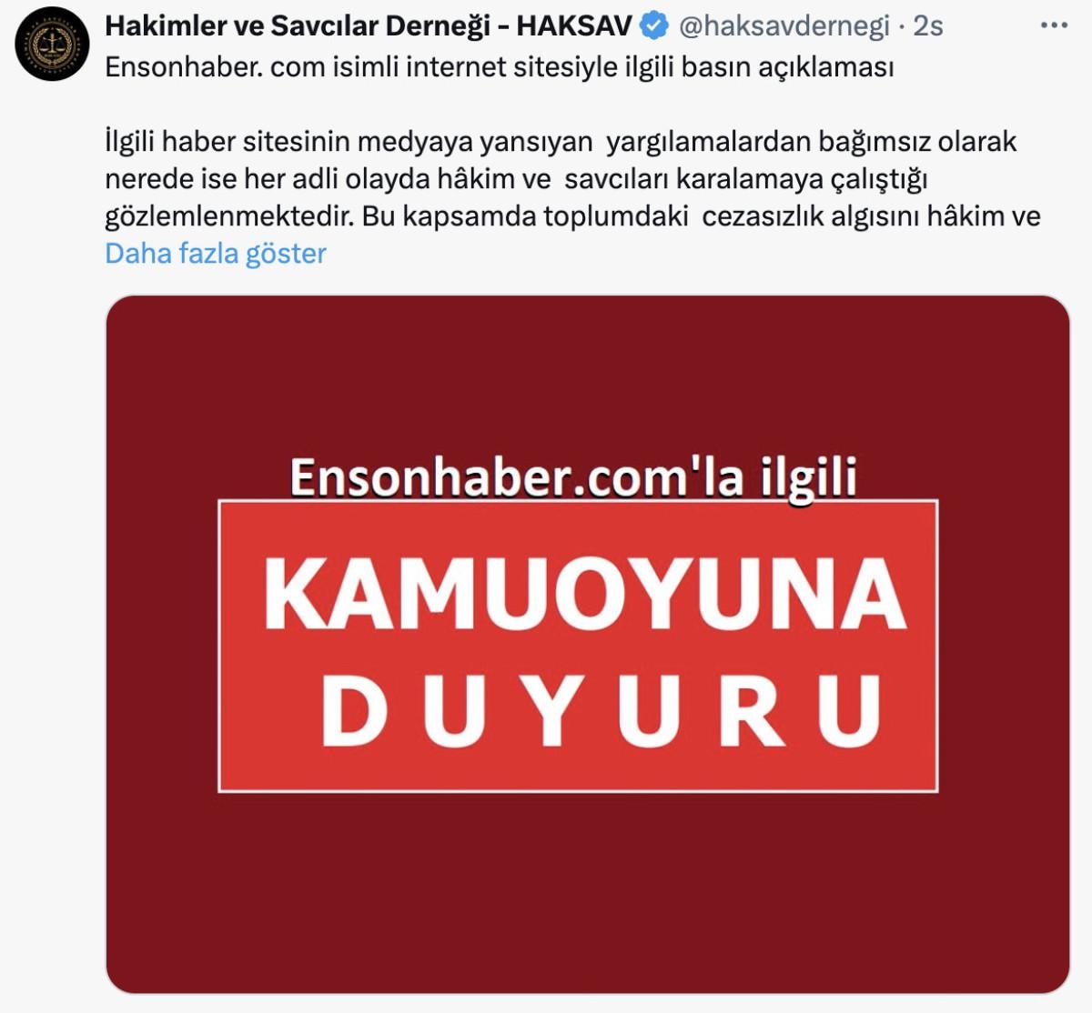Türkiye'nin gündemine oturan olaylarla ilgili çıkan tartışmalı kararları haberleştiren Ensonhaber, bazı hakim ve savcılar tarafından kurulan Hakimler ve Savcılar Derneği'nin (HAKSAV) hedefi haline geldi.