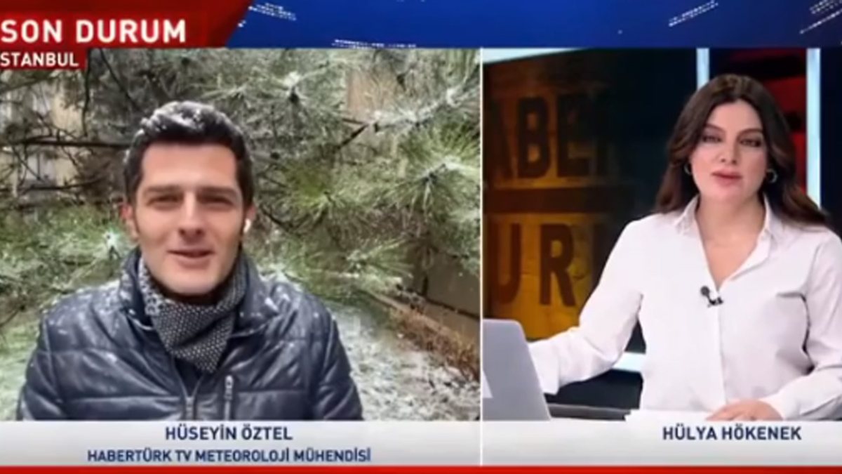 Geçtiğimiz gün Habertürk'te sunucu Hülya Hökenek hava durumu aktarması için meteroloji mühendisi Hüseyin Öztel'e bağlandı.
