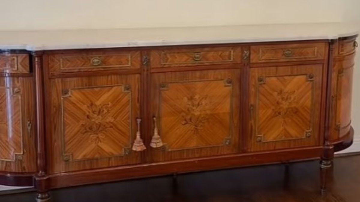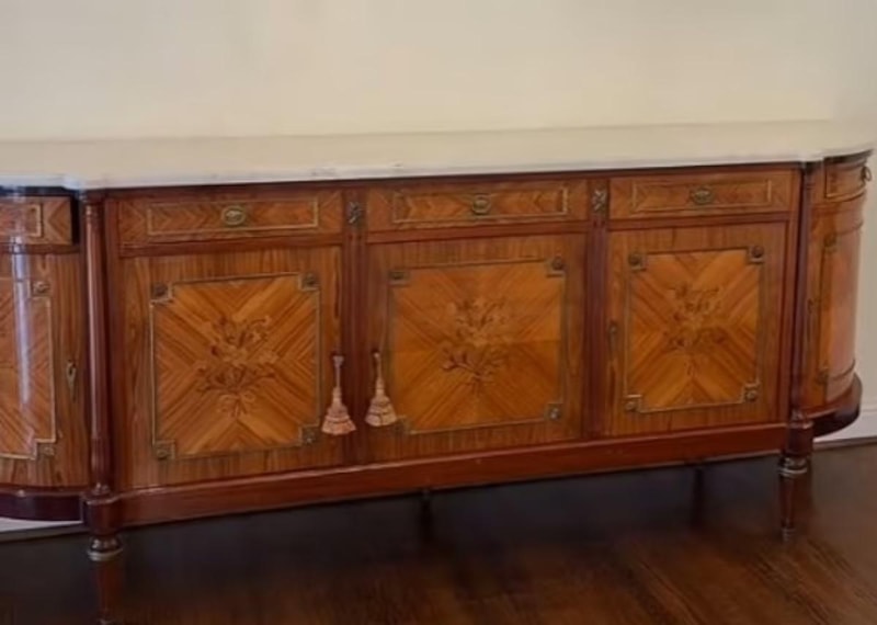 Takipçileriyle paylaştığı videosunda "Muhteşem Louis XVI büfesini buldum, bu yüzden tabii ki satın aldım" ifadelerini kullandı .