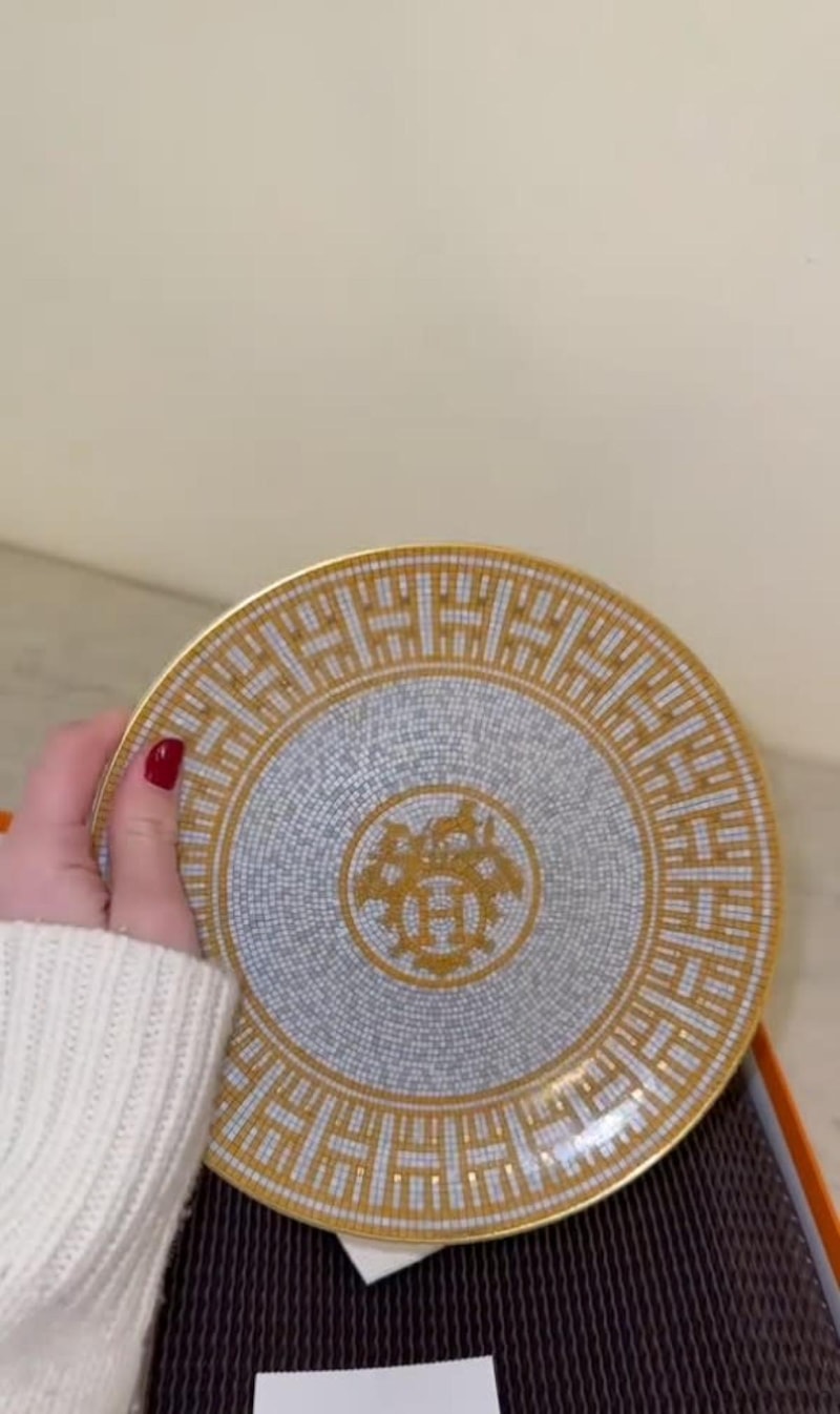 Kutuları açtığında ise altın çerçeveli Hermes marka porselen tabaklar buldu.
