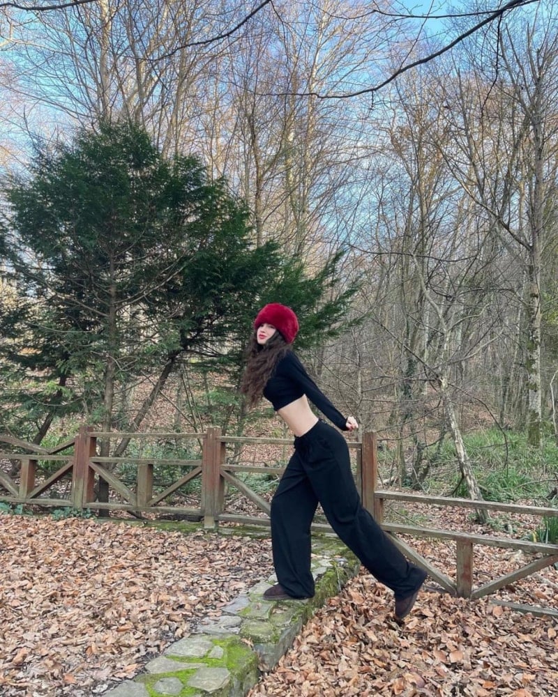 Soğuk havada belini açıkta bırakan Su Burcu, fiziğini ortaya koydu.