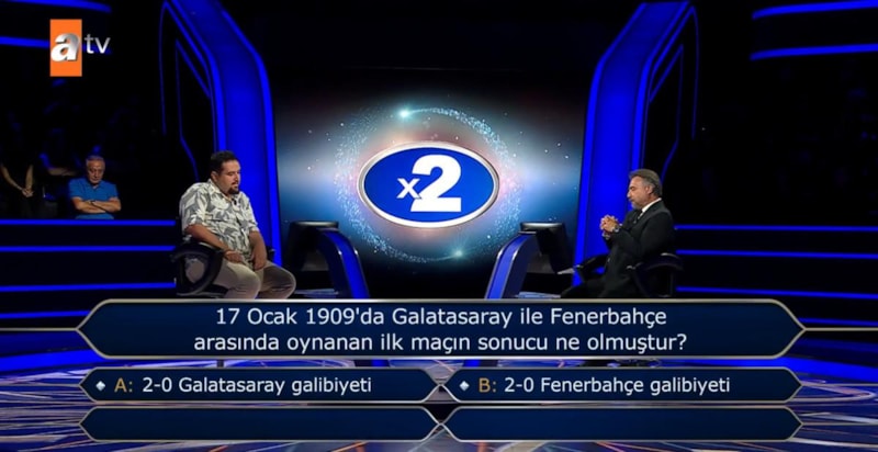 Yarışmacıya, 200 bin TL değerindeki "17 Ocak 1909'da Galatasaray ve Fenerbahçe arasında oynanan ilk maçın sonucu ne olmuştur?" sorusu yöneltildi.