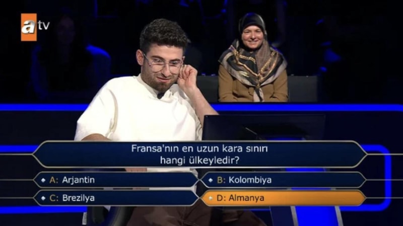 11'inci 400 bin liralık soruya kadar ulaşan yarışmacının karşısına, "Fransa'nın en uzun kara sınırı hangi ülkeyledir?" sorusu çıktı.
