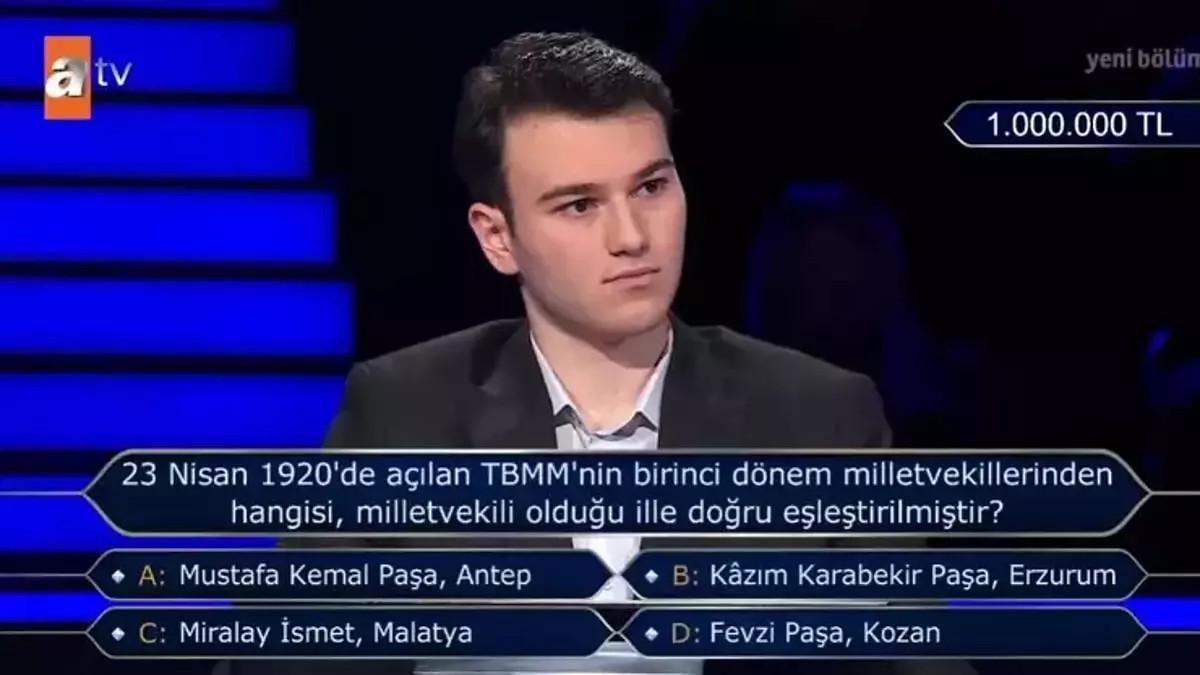 Göktaş'a, "23 Nisan 1920'de açılan TBMM'nin birinci dönem milletvekillerinden hangisi, milletvekili olduğu ille doğru eşleşmiştir?" diye soruldu.
