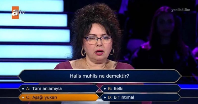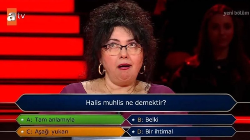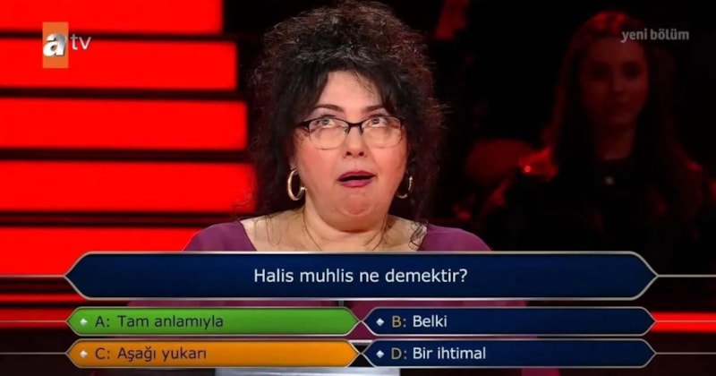 Fakat ikinci soruda yarışmacının karşısına "Halis muhlis ne demektir?" sorusu çıktı.