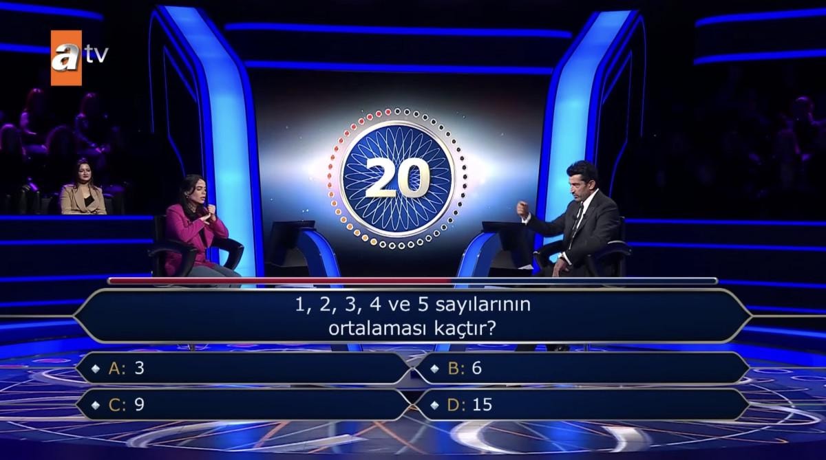 Daha sonra dördüncü soru olan, "1, 2, 3, 4, ve 5 sayılarının ortalamaları kaçtır?" sorusu soruldu.