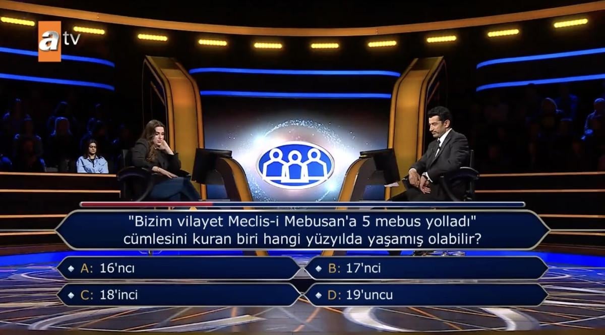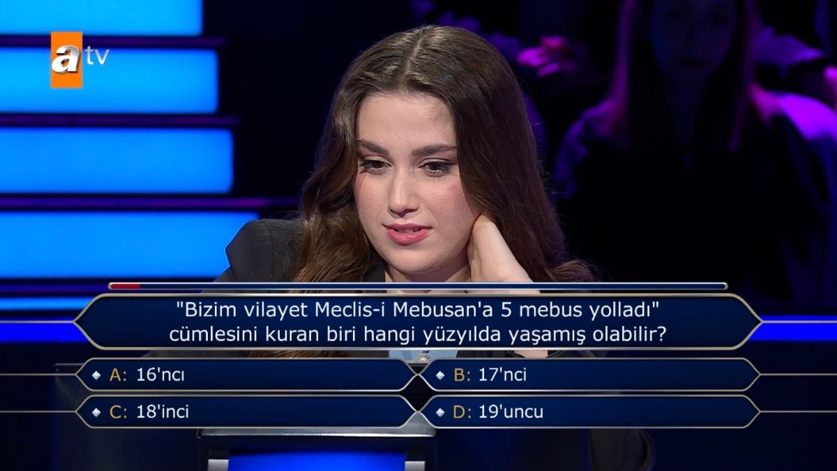Yarışmacıya "Bizim vilayet Meclis-i Mebusan'a 5 mebus yolladı" cümlesini kuran biri hangi yüzyılda yaşamış olabilir?" sorusu soruldu.