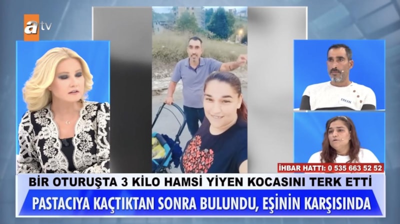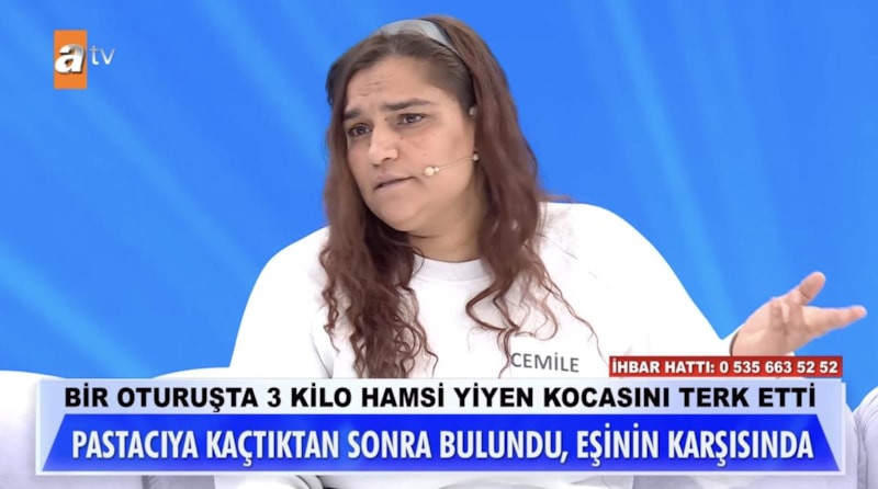 Müge Anlı'nın programında Cemile isimli kadın, kocasını ve üç çocuğunu terk edip pastacıya kaçtığını açıkladı. Terk etme gerekçesinin ise kocasının tek oturuşta 3 kilo hamsi yemesi olduğunu söyleyen Cemile izleyenleri şaşkına çevirdi.