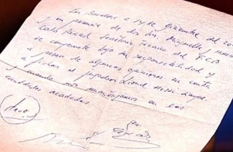 2000 yılının Aralık ayından imzalanan peçete, o dönemde Barcelona’da direktörlük yapan Carles Rexach’ın Messi ile anlaşması hakkındaki taahhüdü taşıyor.