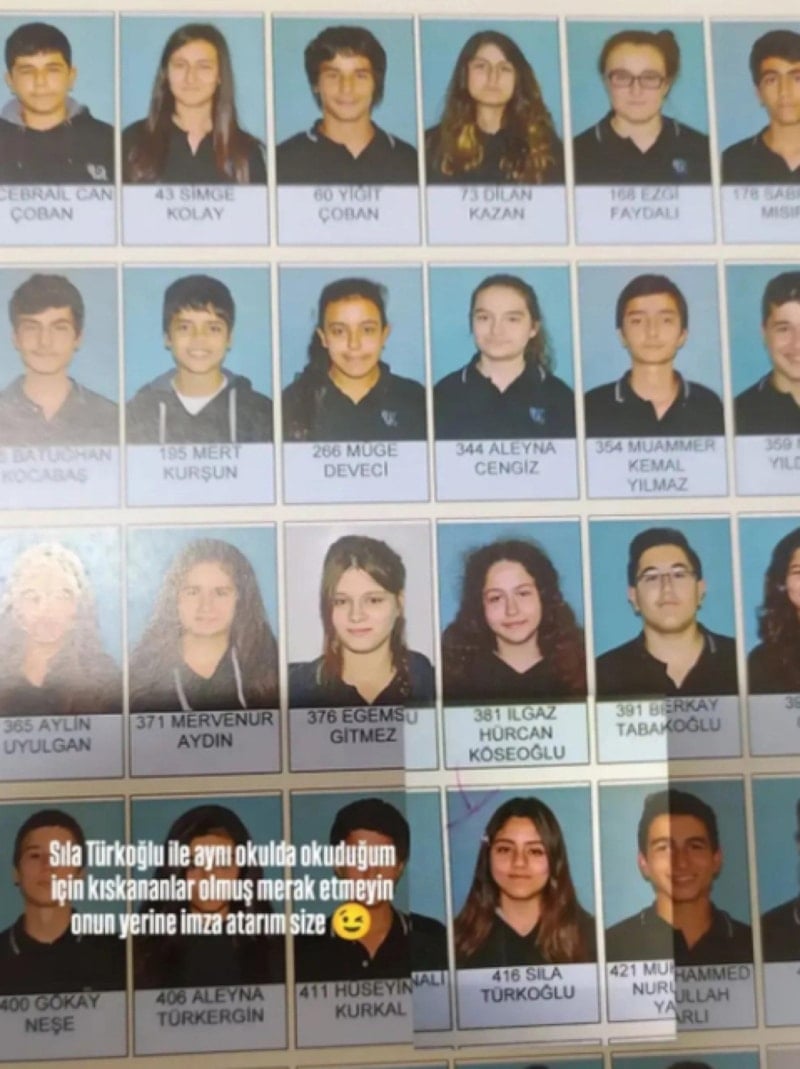 Sıla Türkoğlu'nun lise arkadaşını olduğunu iddia eden kullanıcı, oyuncunun lise yıllığındaki fotoğrafını paylaştı.