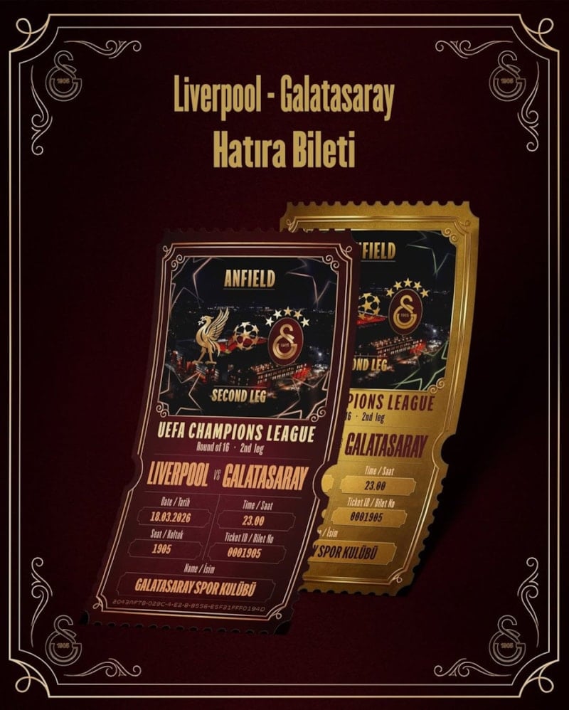 Galatasaray, sosyal medya hesabından Liverpool maçına özel hatıra bileti uygulaması başlattı. Maça gidemeyen taraftarlar, "Kalbimiz orada" sloganıyla hatıra bileti oluşturup saklayabilecek.