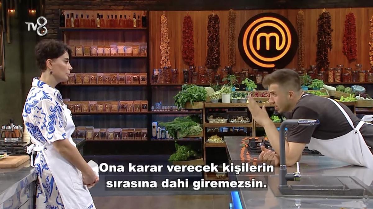 Mehmet Şef de Deniz'in tavrına kayıtsız kalamayarak "Buraya seçtiğimiz yarışmacıların performansıyla alakalı buradaki hiçbir yarışmacının laf söylemeye haddi yok." cevabını verdi.