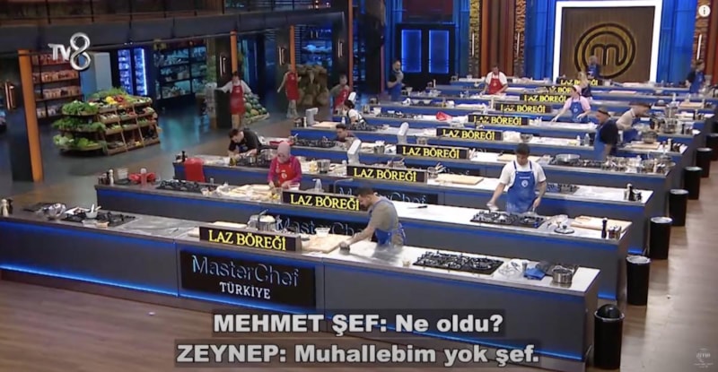 Dolapta muhallebisini göremeyen Zeynep, "Mehmet Şef, muhallebim yok, kayıp." dedikten sonra "Benim muhallebimi gören var mı?" diye bağırdı.