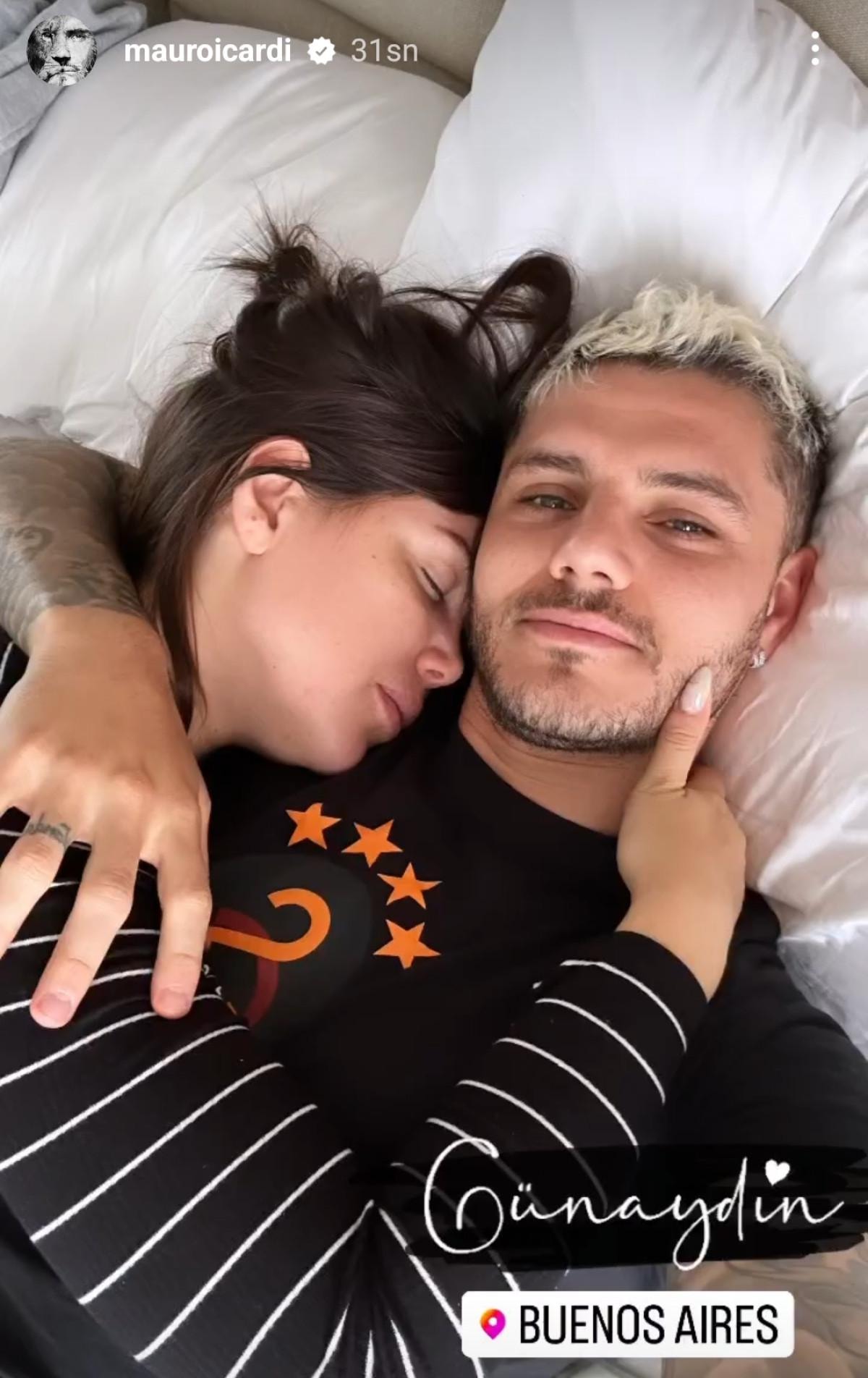 Yataktan bir poz paylaşan Icardi, Türkçe olarak “Günaydın” notunu düştü.