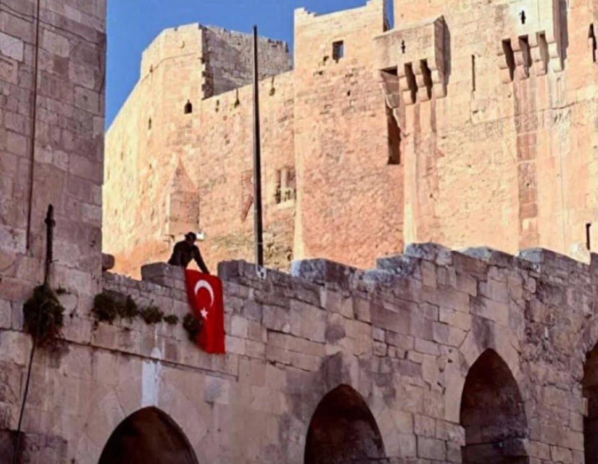 Muhalifler bölgede ilerleyişini sürdürürken, yaklaşık 400 yıl Osmanlı himayesinde kalan şehrin en büyük simgelerinden Halep Kalesi'nde dün Türk bayrağı dalgalandı..