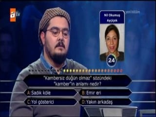 Kim Milyoner Olmak İster'e katılan ODTÜ Matematik mezunu kriptolog genç, karşısına çıkan "Kambersiz düğün olmaz sözündeki kamberin anlamı nedir?" sorusunda zorlandı.