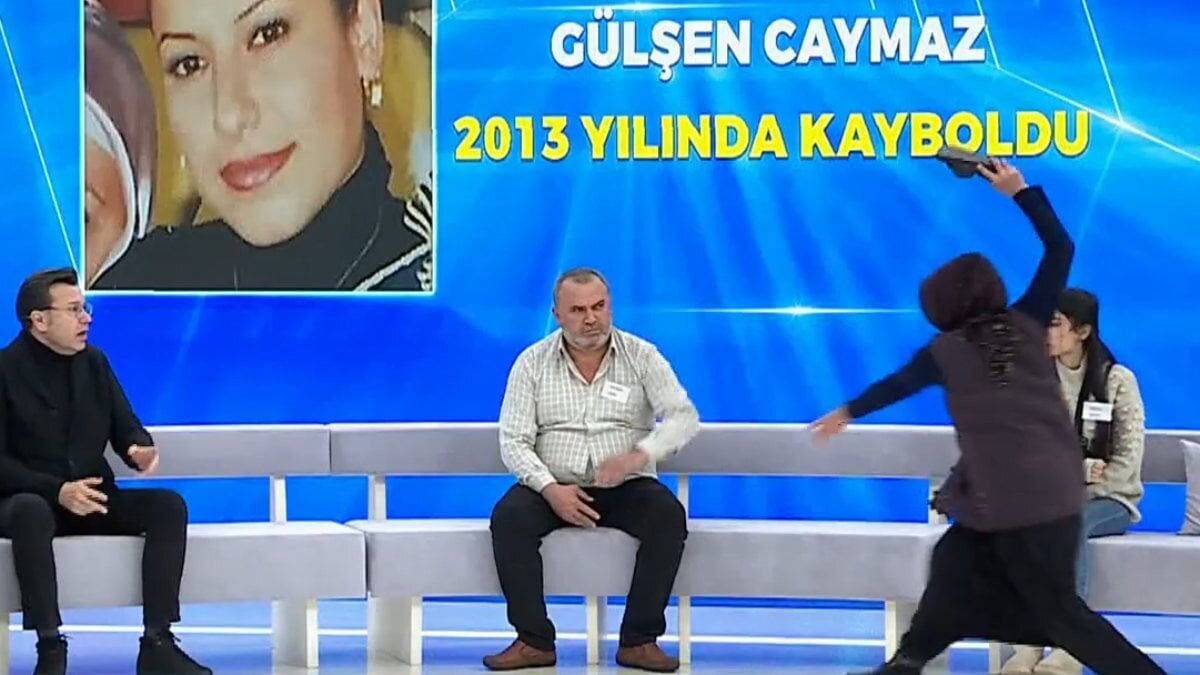 2013 yılında kaybolan kızı Gülşen Caymaz için Müge Anlı'nın programına çıkan anne, kızına dün ithamlarda bulunan Murt Akın’a terlik fırlattı.