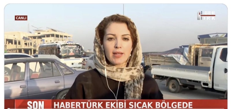 Gazeteci Alçı, canlı yayına katıldığı sırada başını örttü.