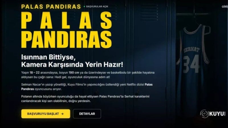 Dünyanın en büyük dijital yayın platformu Netflix, ödüllü yönetmen Selman Nacar imzalı yeni Türk dizisi Palas Pandıras için oyuncu arıyor. Türkiye genelinde başvurular açıldı.