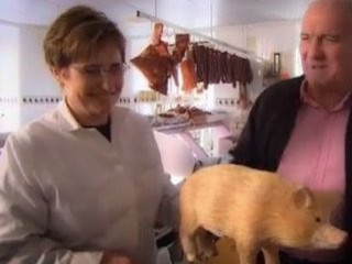 Programın sunucusu, sucuk yapımında kulllanılan etin, hayvanın neresinden alındığını gösterirken domuz maketini kullandı.