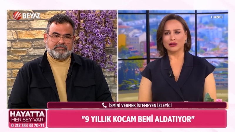 Canlı yayına bağlanan kadın, "9 yıllık evliliğim var. Son 5-6 ay önce eşimde tuhaf hareketler sezdim. Bir gün telefonunu elime aldım baktım mesaj. Mesajları görünce şoke oldum.. Bir kişi değil, binlerce kişi. " dedi.