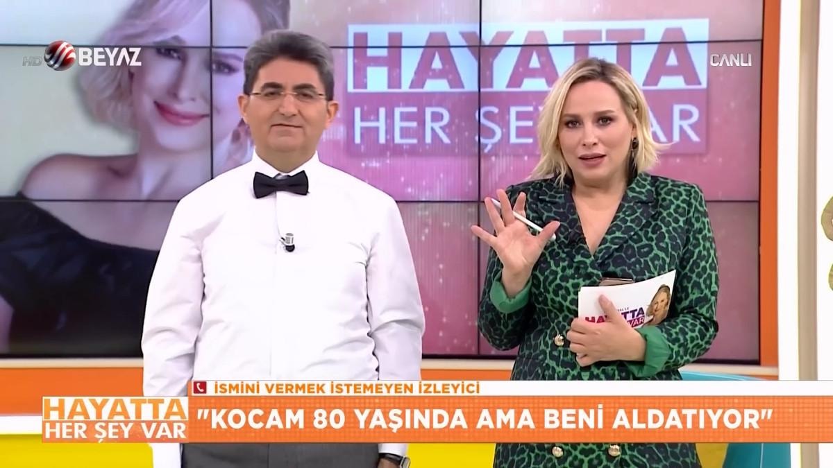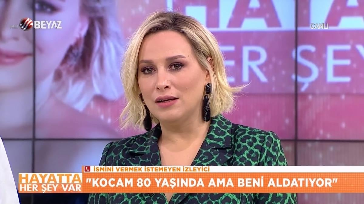 Programa katılan bir kadın 80 yaşındaki eşinin kendisini aldattığını söyledi. Bağlantı yapan kadın, "Elli beş yıllık evliyim. Fakat kocam aldatıyor. Şu an 80 yaşında." dedi.