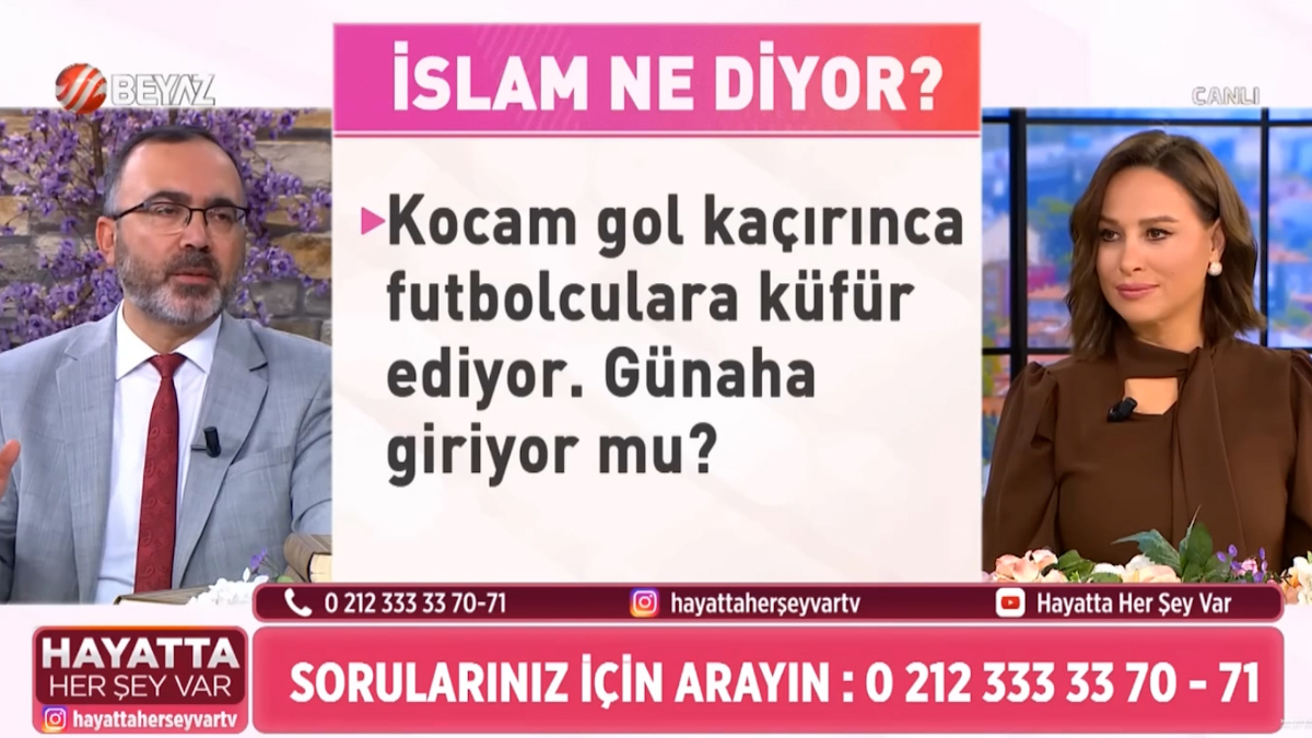 Bir diğer izleyicinin "Kocam gol kaçırınca futbolculara küfür ediyor. Günaha giriyor mu?" sorusuna ise Bilgiç'in yanıtı şöyle oldu: