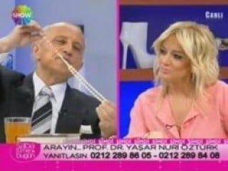 Canlı yayında fildişi tesbihini Saba Tümer'e göstererek; "Müzelik bu müzelik" şeklinde bir açıklama yaptı. Saba Tümer, Yaşar Nuri Öztürk'ün tesbihine yönelik övgülerine: "Siz de müzeliksiniz hocam" sözleriyle karşılık verdi.