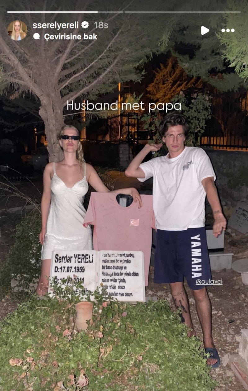 Sevgilisi Oğul Avcı ile babasının mezarı başında poz veren Yereli o kareyi "Kocam babamla tanıştı" notuyla paylaştı.