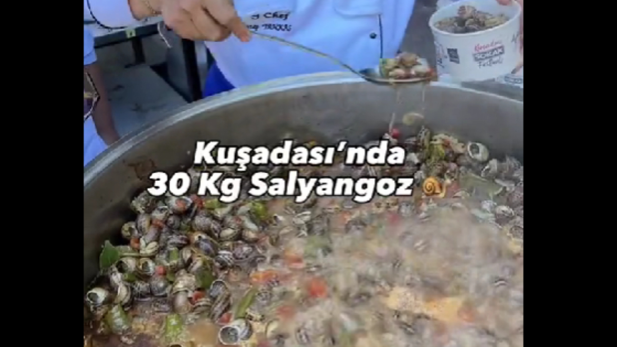 Çin'den gelen ilginç yeme görüntülerine bu defa Kuşadası eklendi. Kuşadası'nda bir kadının salyangoz sattığı görüldü.