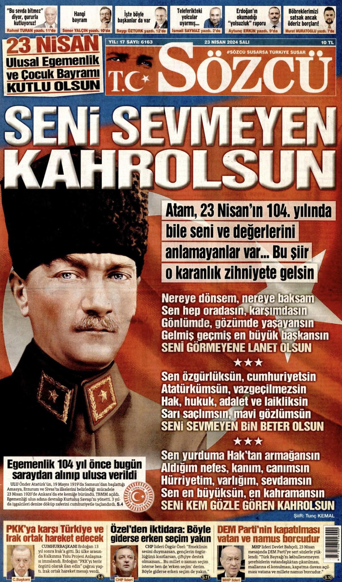 Mustafa Kemal Atatürk'ün fotoğrafını kullanan gazete, "Seni sevmeyen kahrolsun" dedi.