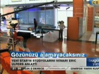 Star'ın yeni stüdyoları NTV'nin haber kübünü tasarlayan mimar tarafından tasarlandı. Stüdyolar çok amaca hizmet eden ve işlevselliği güçlü mekanlar şeklinde farklı bir konseptle tasarlanırken NTV stüdyolarındaki çizgiler Yeni Star'da da görülüyor... Mimar Erik Ulfers stüdyoyu tasarlarken neyi amaçladığını NTV'ye anlatırken mekanı ekran yüzlerinin bir parçası gibi tasarladıklarını söyledi.
