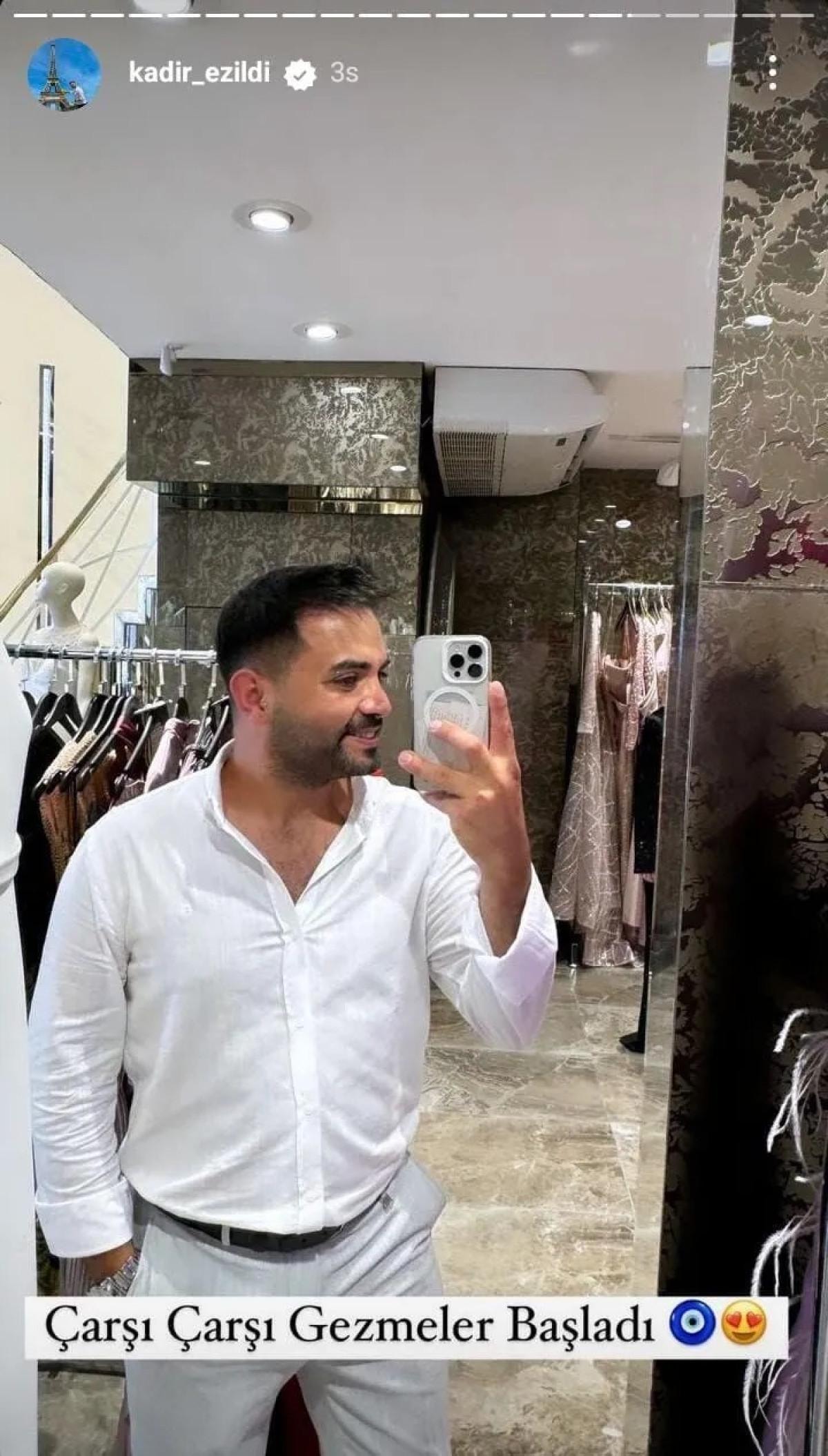 Kadir Ezildi sosyal medya hesabında "Çarşı Çarşı Gezmeler Başladı" notuyla fotoğrafına yer verdi.