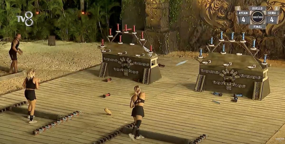 Survivor eleme düellosunun son etabında Sema ve Aycan karşı karşıya geldi.