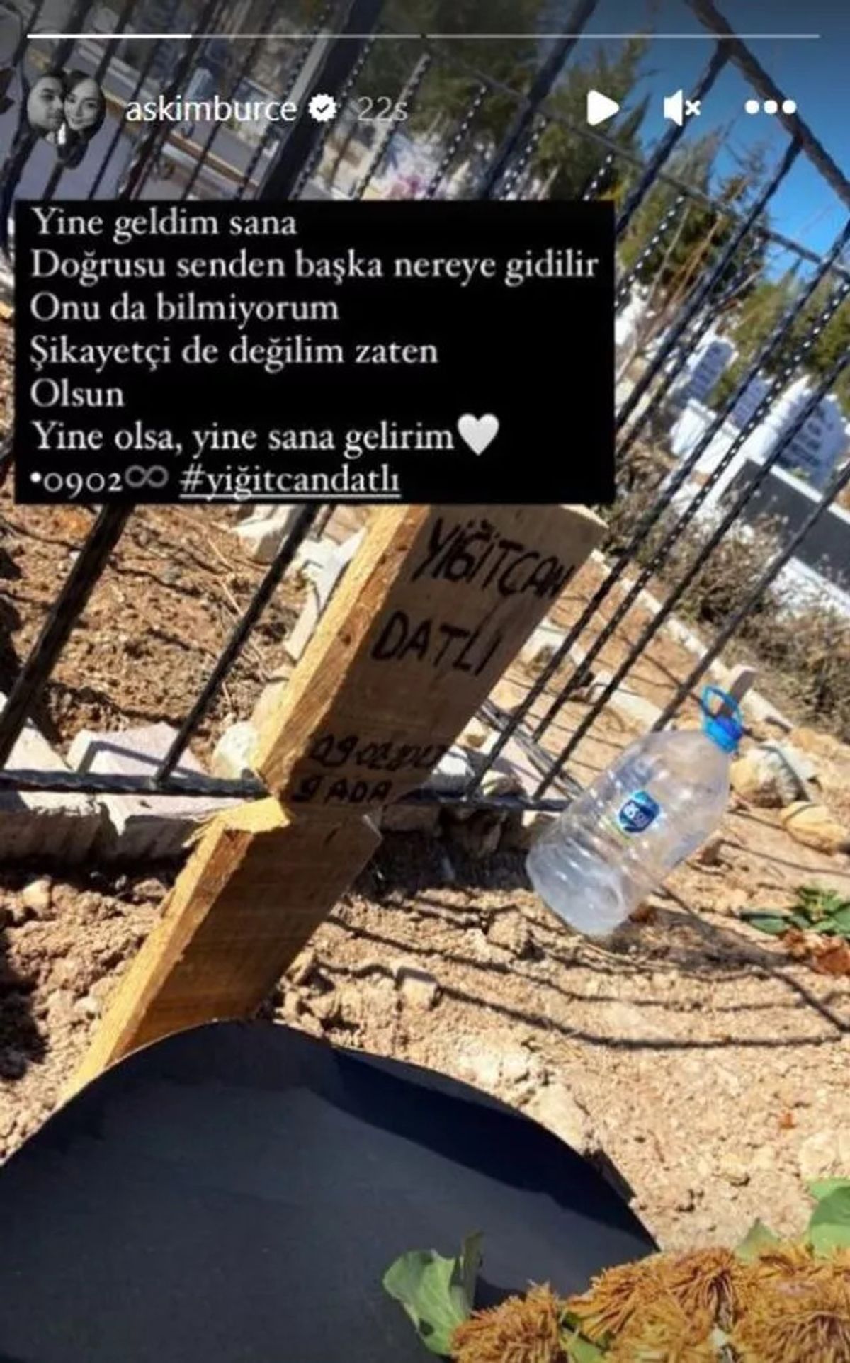 Yürekleri dağlayan sözlerin ardından mezarlıktan da paylaşım yapan Aşkım Burçe "Yine geldim sana doğrusu senden başka nereye gidilir onu da bilmiyorum olsun yine olsa yine sana gelirim." dedi.