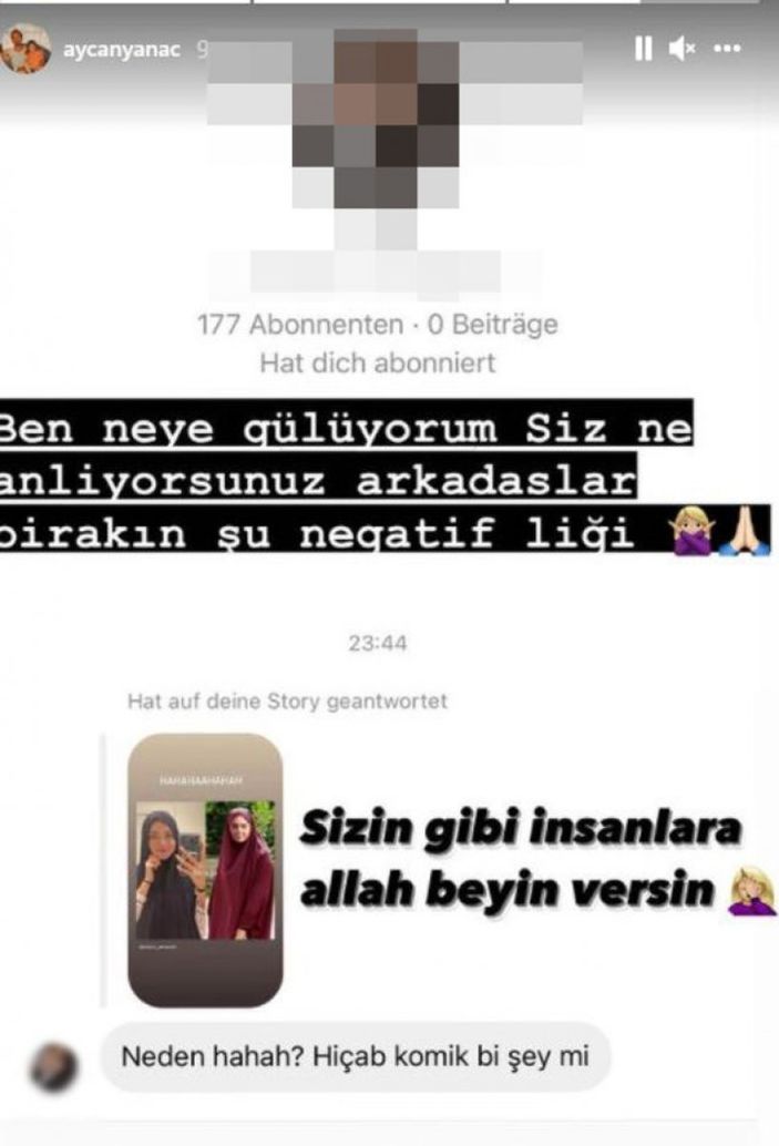 Aycan paylaşımının devamında, ''Sizin gibi insanlara Allah beyin versin.'' diyerek sitem etti.