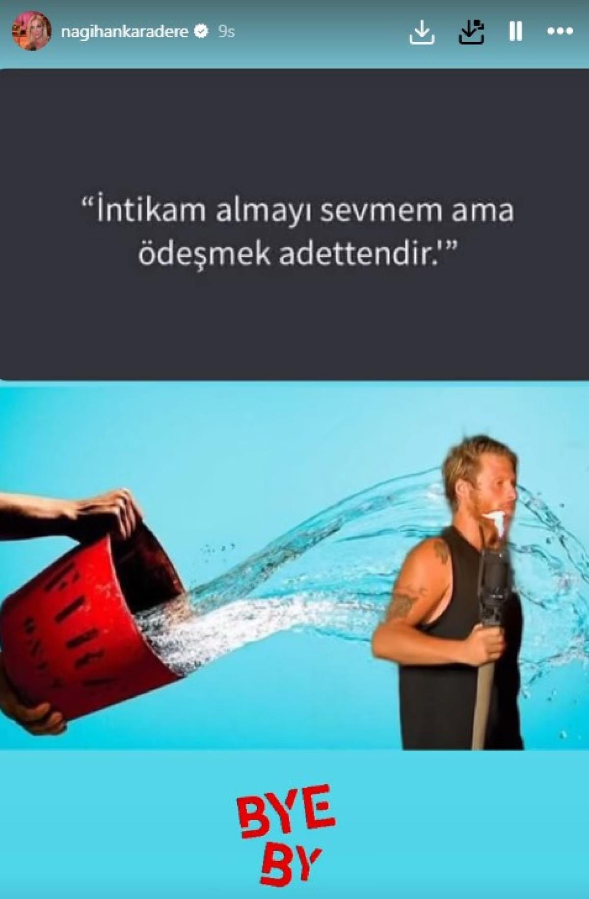 Yunus Emre’nin elenmesinin ardından Nagihan Karadere sosyal medya hesabından Yunus Emre’nin arkasından su dökülen bir paylaşımda bulundu. Karadere paylaşımına düştüğü "İntikam almayı sevmem ama ödeşmek adettendir" notuyla dikkatleri üzerine çekti.