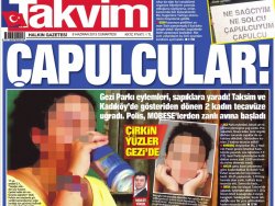 Takvim gazetesi, bugünkü manşetine taşıdığı haberle Gezi eylemlerine katılan veya destekleyenleri hayli kızdıracağa benziyor.