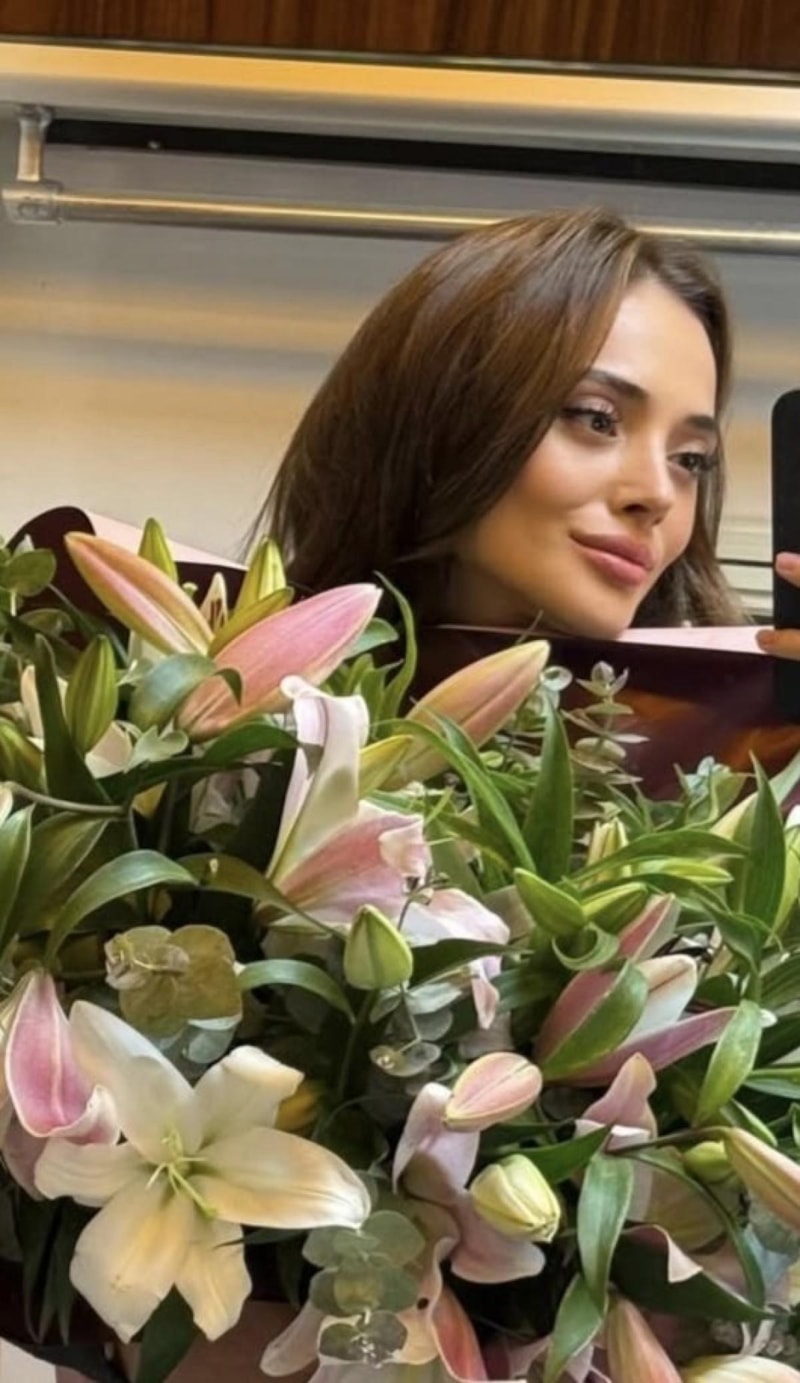 İlk günden paylaşım yapan ünlü oyuncu, sette çiçeklerle karşılandı.