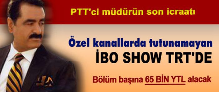 İbrahim Tatlıses, geçtiğimiz yıla kadar atv'de yaptığı şov programını bu sezon TRT'ye taşıyor. TRT kulislerinden gelen haberlere göre İbrahim Tatlıses'e bölüm başına 65 bin YTL ödeneceği belirtilmişti. Ancak ünlü türkücü TRT'den haftada 150 bin YTL alacağını söyledi. "O PARAYA PROGRAM YAPACAK İNSAN DEĞİLİM"Konuyla ilgili VATAN'a konuşan sanatçı şöyle dedi: "Ben atv'de yaptığım programdan 150 bin YTL alıyordum. 65 bin YTL'ye program yapacak insan değilim. Bu iddialarla beni aşağı çekmeye çalışıyorlar, fiyatımı düşürmek istiyorlar. Bunu duyan, 'Gel 100 bin YTL'ye program yapalım sana' diyor. Benim yapım şirketim bir kanala program yapıyor. Reyting almıyor, bana malediliyor." GÜN KONUSUNDA ANLAŞMA SAĞLANAMADITatlıses, TRT ile henüz sözleşme imzalamadığını belirterek, şöyle konuştu: "Gün konusunda henüz anlaşamadık. İbo Show'un günü, pazardır. İzleyicilerin alıştığı bildiği bir gündür. Ancak TRT hafta içi yapmak istiyor. Ben de pazar gününde ısrarlıyım. Yarın biraraya geleceğiz ve kesin olarak konuşacağız. TRT'de yer almak istiyorum. Çünkü bizim ilk göz ağrımızdır." Vatan
