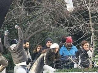 Öğleden sonra sete gelen Büyüküstün'ün makyajı özel karavanında yapıldı. Beyaz beresiyle mezarların içinde çekilen sahnede Büyüküstün, senaryo gereği ölen babasının mezarında gözyaşı döktü. Yapımcı Kerem Çatay ilk çekim gününde ekibi yalnız bırakmadı.