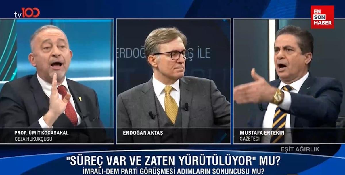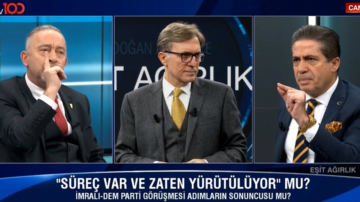 TV100'de yayınlanan Erdoğan Aktaş'la Eşit Ağırlık programında İmralı-DEM görüşmesi tartışılırken, konuklar arasında tansiyon yükseldi.